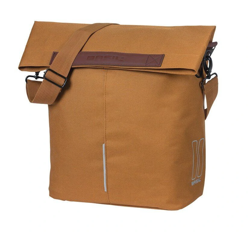 Der Basil City Shopper: Der Fahrrad-Shopper passt ideal zum schnellen Tempo der Stadt. Arbeit, Freunde, Feiern, auf den Markt gehen oder nach einer Yogastunde mal ganz du selbst sein. Der schwarze Shopper ist nicht zu schwer und nicht zu groß, aber bietet viel Platz (mit großartigen 14 – 16 Litern Inhalt) und ist stabil genug, um einige Einkäufe oder Sonstiges darin mitzunehmen. Der magnetische, wasserabwehrende Faltverschluss verhindert, dass Wasser in die Tasche gelangt. Die schwarze Tasche kannst du einfach am Gepäckträger befestigen oder an dem abnehmbaren Schulterriemen lässig über die Schulter hängen. An den Griffen aus veganem Leder lässt sich die Tasche angenehm tragen. Die Tasche hat ein Innenfach mit Reißverschluss und die integrierte Option zur Befestigung einer LED-Beleuchtung.