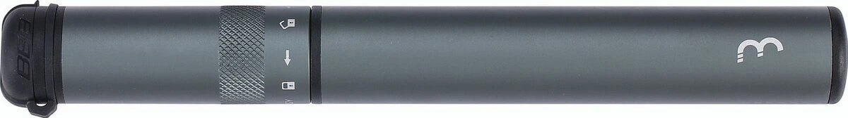 Superleichte Minipumpe aus 6061 T6 Alu mit ausziehbarem Pumpenschlauch, zum leichteren Aufschrauben auf das Ventil. Umschaltbar auf Druck oder Volumen.