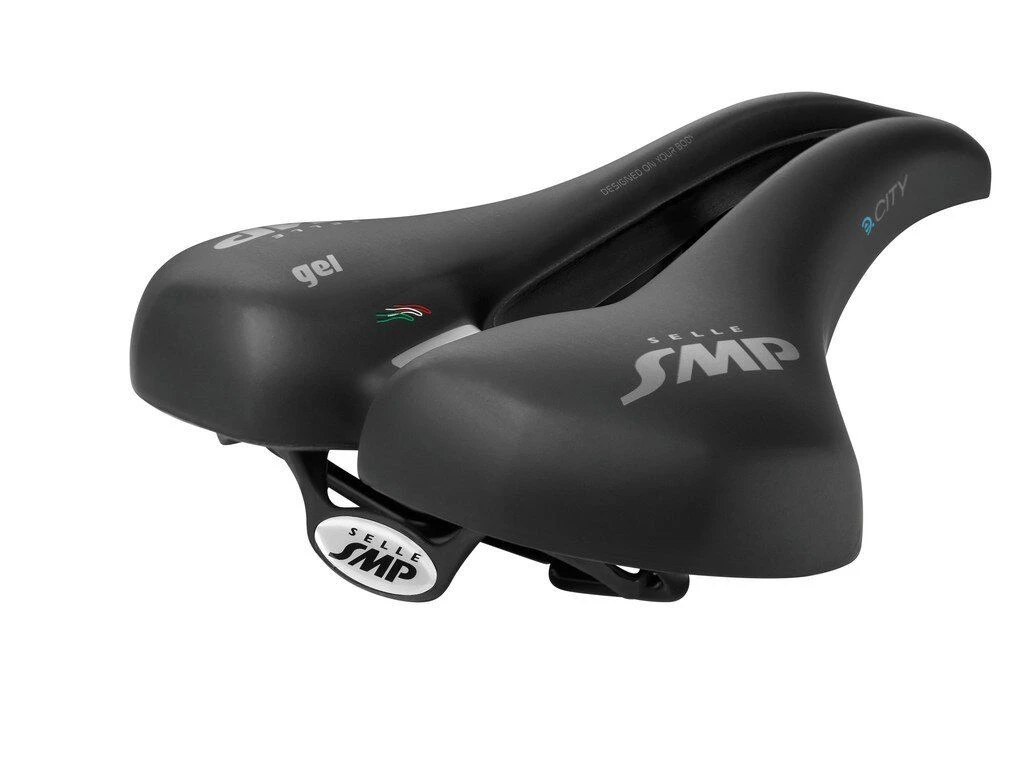 SELLE SMP Sattel E-City Gel Sitzknochenabstand: von 9 bis 15cm Einsatzbereich: E-City Polsterung: Polyurethan und Gel Polsterstärke: Stark Decke: SVT Velvet Touch Gestell: Stahl FeC30Schale: Kopolymerpolypropylen