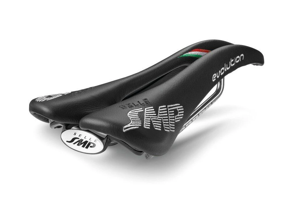 SELLE SMP Sattel Evolution Sitzknochenabstand: 9,0 – 11,0 cm Einsatzbereich: Road/ MTB Polsterung: minimal Schale: Nylon 12 mit Carbonfaser-Verstärkung Gestell: Edelstahl INOX AISI 304 Decke: Echtleder Vera Pelle in der Variante Schwarz und Lorica-Mikrofaser in anderen Farbvarianten